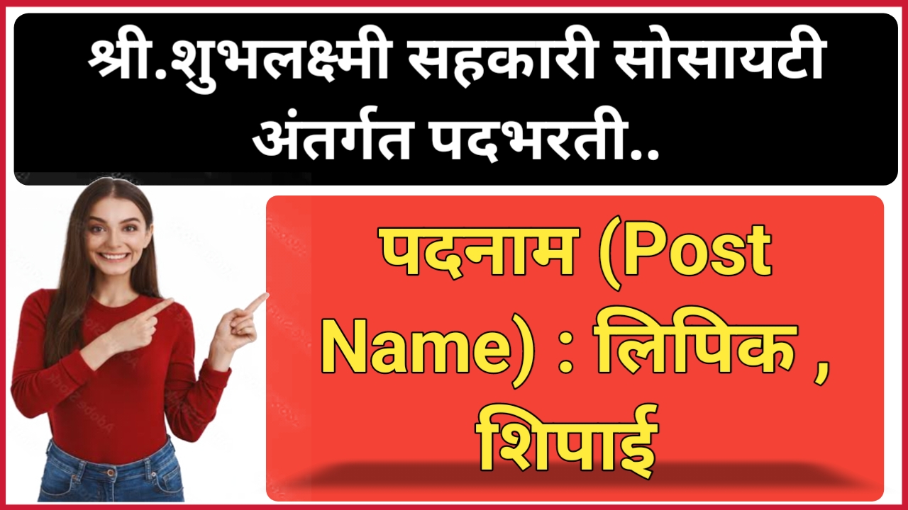 श्री.शुभलक्ष्मी सहकारी सोसायटी अंतर्गत लिपिक , शिपाई पदासाठी पदभरती ; लगेच करा आवेदन ..